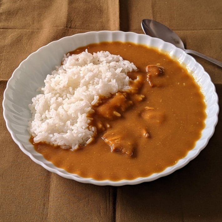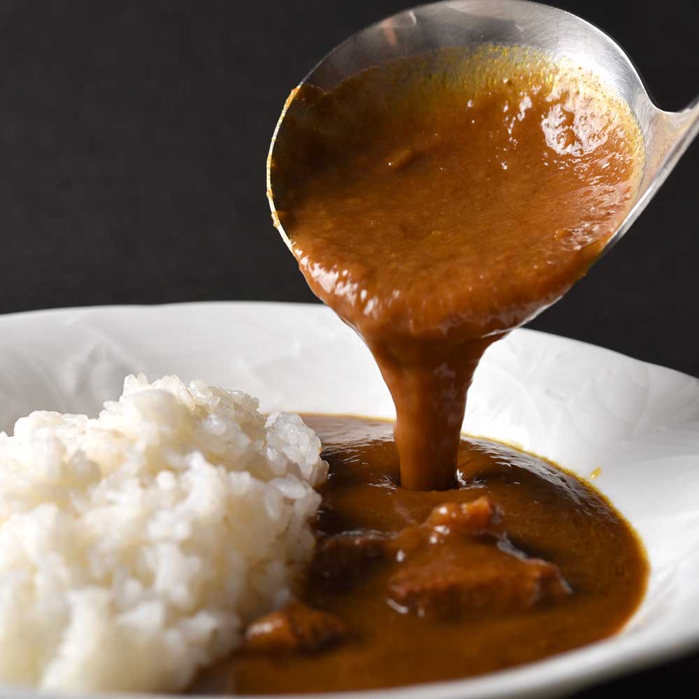 - 牛肉(国産)、玉ねぎ、鶏がらスープ、リンゴピューレ、小麦粉、トマトケチャップ、おろしにんにく、植物油脂(菜種)、カレー粉、バター、醤油、砂糖、おろししょうが、クミンパウダー、コリアンダーパウダー、食塩、ココア、(一部に小麦・乳成分・牛肉・鶏肉・大豆・りんごを含む)