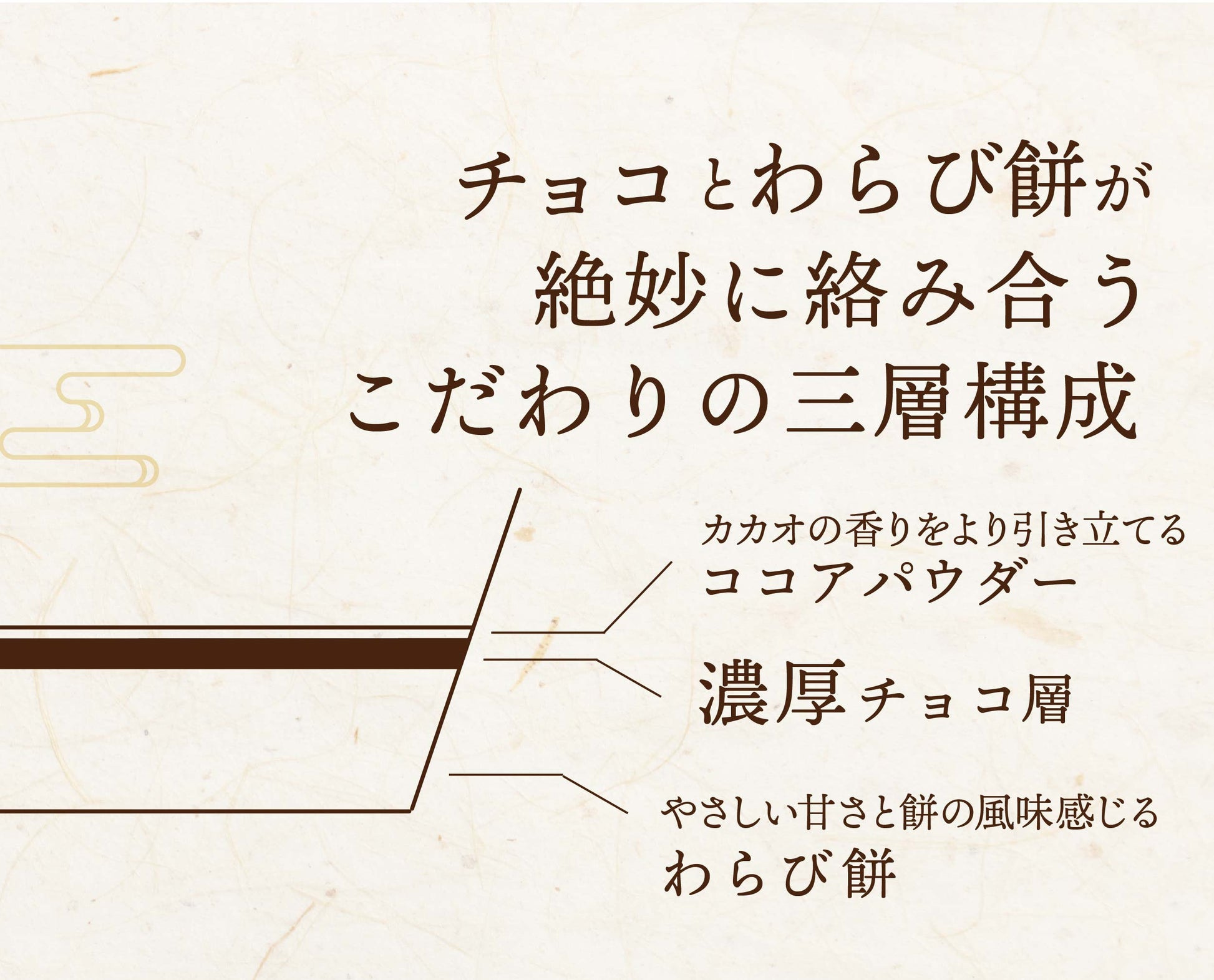 - オーガニックチョコレート(国内製造)、砂糖、牛乳、わらびミックス粉(甘しょでん粉、本わらび粉)ココアパウダー、生クリーム/加工でん粉、乳化剤、(一部に乳成分・大豆を含む)